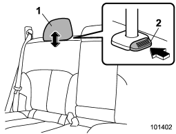 The head restraint should be adjusted so that the center of the head restraint is closest to the top of the occupant’s ears. When the seats are not occupied, lower the head restraints to improve rearward visibility.