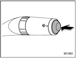 To wash the windshield, push the washer button at the end of the wiper control lever.