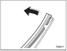 Securely retain both ends of the rubber with the stoppers on the plastic support ends. If the rubber is not retained properly, the wiper may scratch the rear window glass.